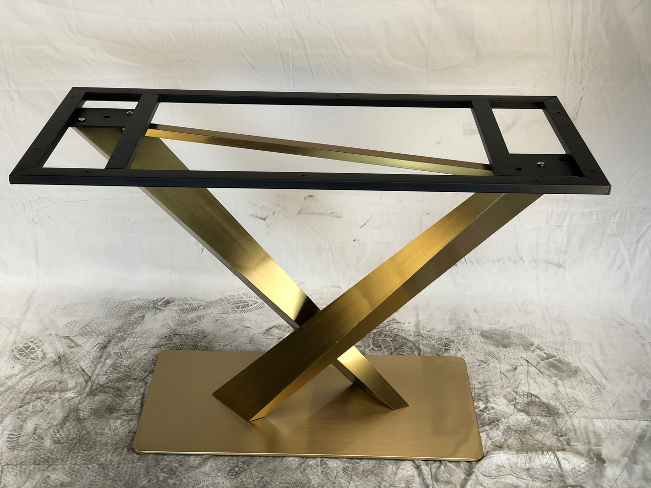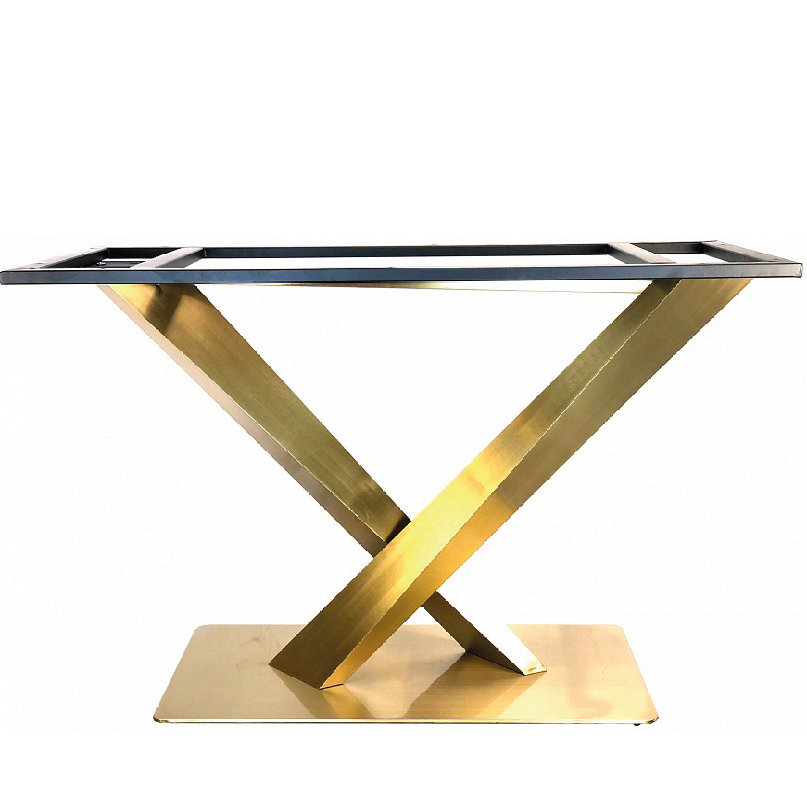 Подстолье из нержавеющей стали 1295EM Лаковое покрытие. цвет "под золото" (нитрид титана) Глубина основания: 40 см Длина основания: 80 см Высота: 72 см Размер верхней части: 112,5х50 см. Рекомендуемый размер столешницы: 140х90см. Заказать подстолье для своего проекта в городе Ярославле, вы можете связавшись с нами любым удобным для вас способом - по телефону, по электронной почте или заполнив форму обратной связи на нашем сайте.