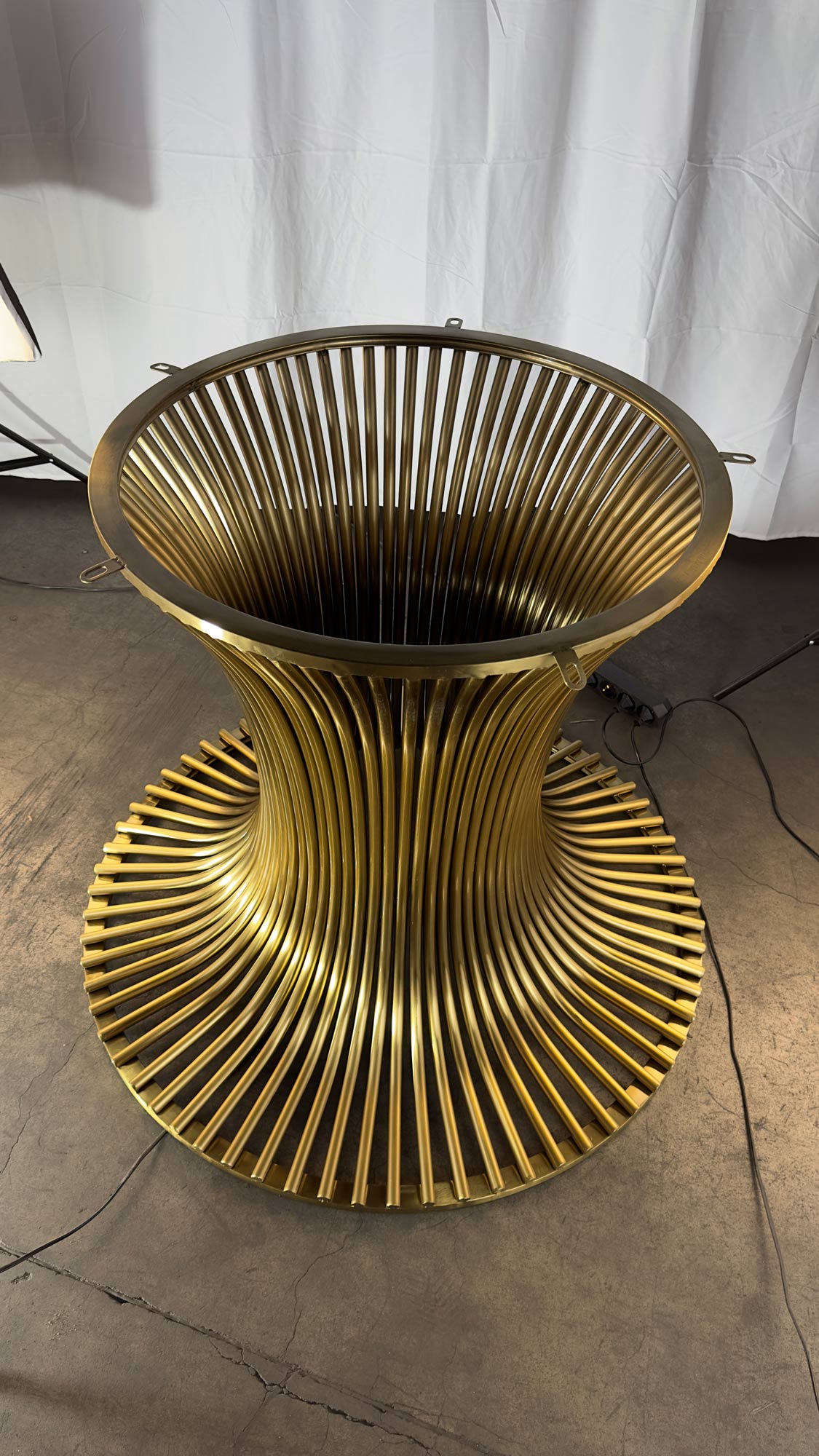 Прочная конструкция с диаметром верхней части 65 см и нижней 90 см создает надежную опору для столешниц Ø220 см. Полированная поверхность устойчива к коррозии и сохраняет безупречный вид при интенсивной эксплуатации, сочетая практичность и элегантность.